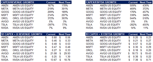 Just as conglomerate investors in the 1960s focused on earnings growth regardless of quality, today’s market participants are fixated on AI infrastructure spending as a proxy for future dominance. The prevailing bias is that companies must spend massively or risk falling behind in the “AI arms race”. This creates what Soros would acknowledge to be a reflexive loop in action – market participants’ perceived urgency to expense unprecedented amounts of capital on this infrastructure build out provokes other participants to follow suit – in turn influencing the market’s reality.